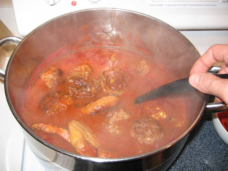 batches of meatballs. When you’re done, add your browned meatballs to the